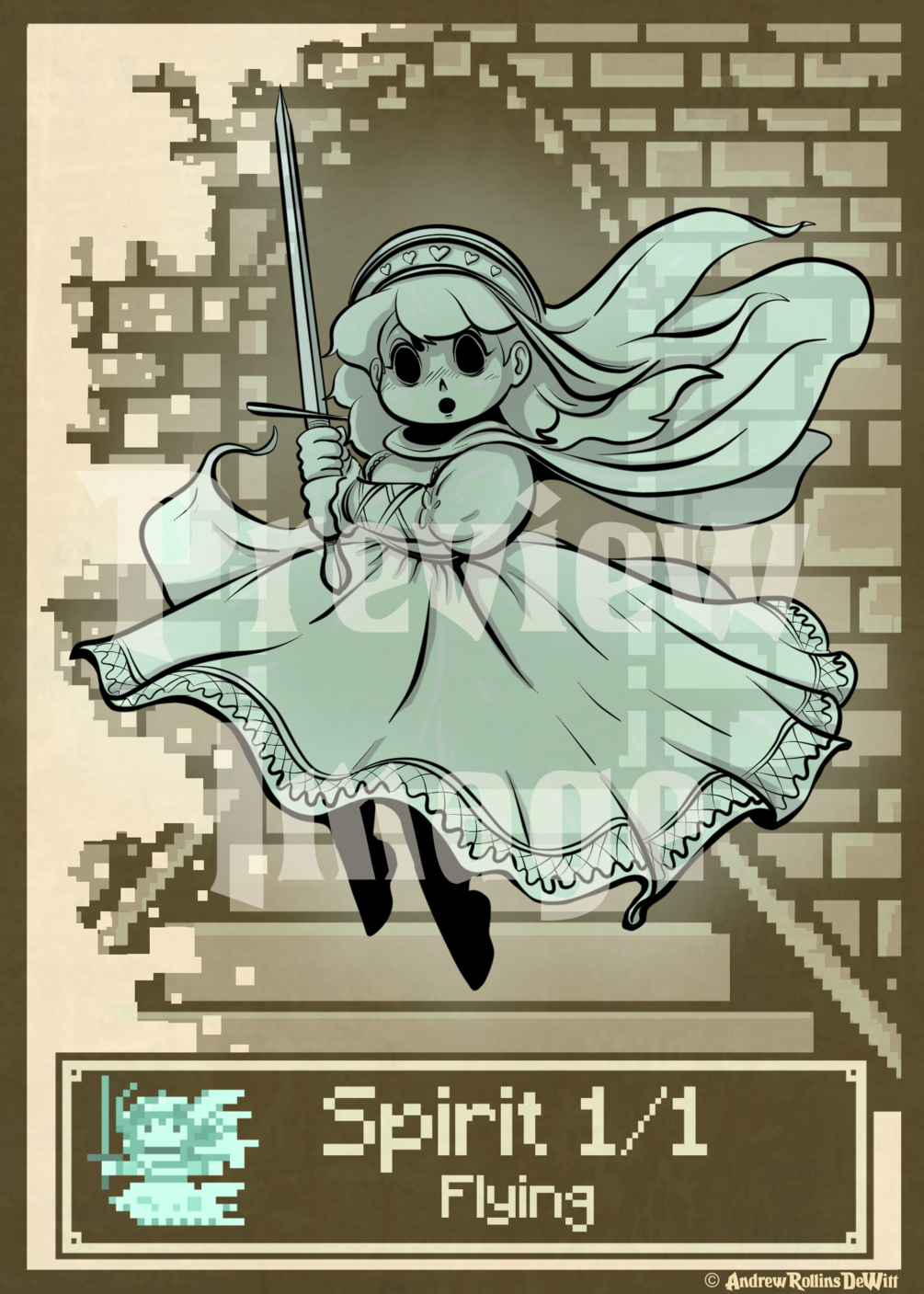 A Retro JRPG Game art style printable token sheet of nine Spirit tokens complete with nostalgic sprite icon. For use in any table top fantasy card game and compatible with Magic The Gathering. Check printer scaling and be sure it’s not set to “scale to page 94%” or anything like that. Set scale to 100% for proper sizing!