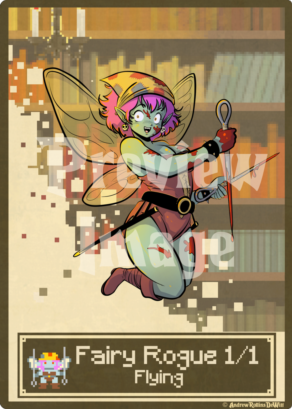 A Retro JRPG Game art style printable token sheet of nine Fairy Rogue tokens complete with nostalgic sprite icon. For use in any table top fantasy card game and compatible with Magic The Gathering. Check printer scaling and be sure it’s not set to “scale to page 94%” or anything like that. Set scale to 100% for proper sizing!