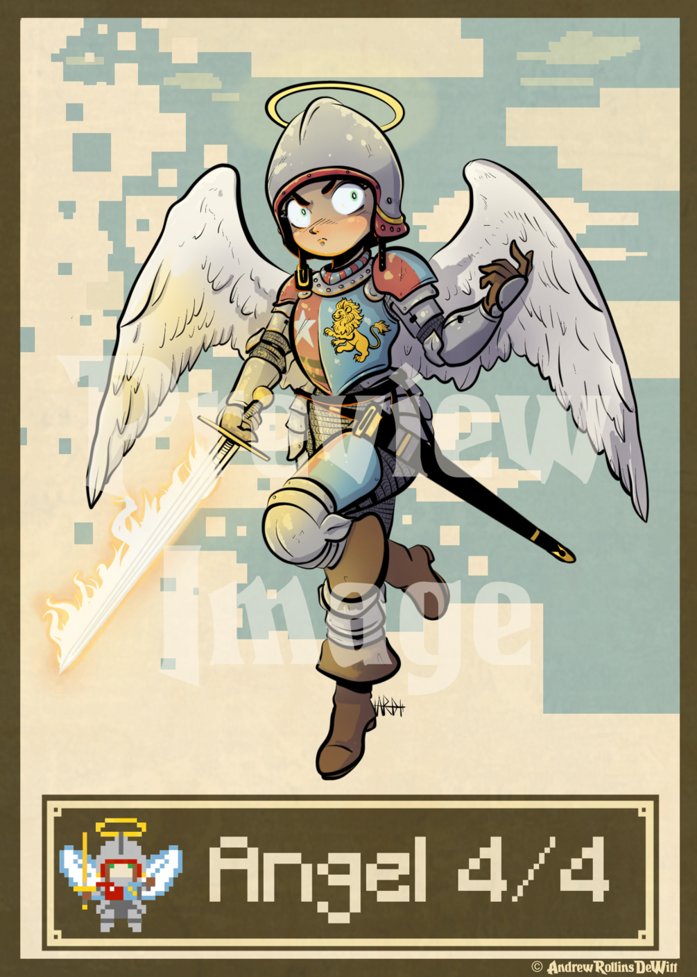 A Retro JRPG Game art style printable token sheet of nine Angel tokens complete with nostalgic sprite icon. For use in any table top fantasy card game and compatible with Magic The Gathering. Check printer scaling and be sure it’s not set to “scale to page 94%” or anything like that. Set scale to 100% for proper sizing!